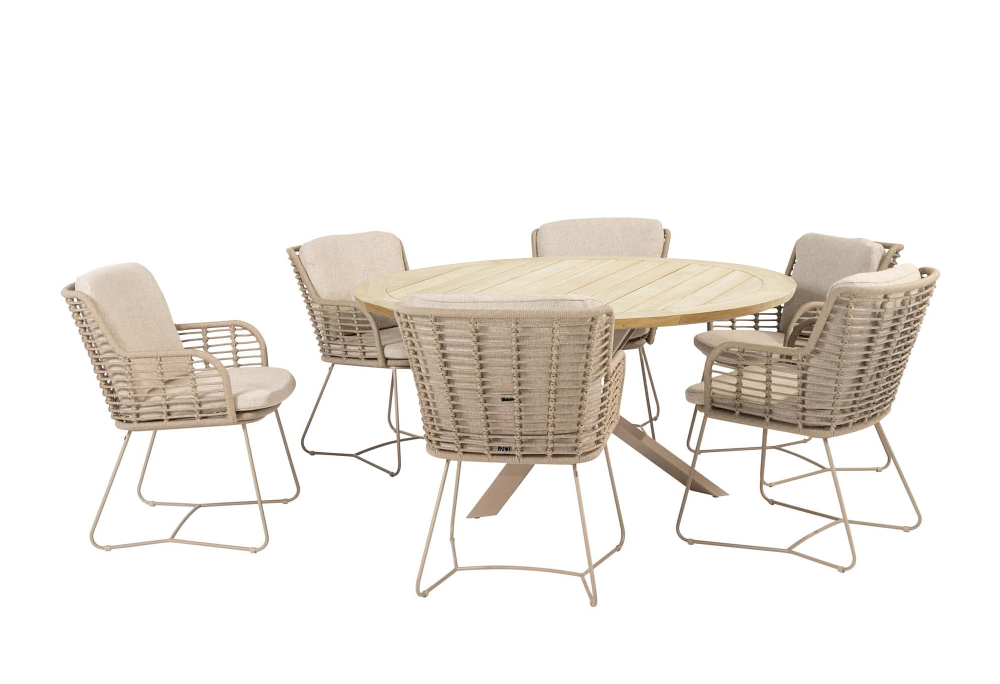 ● 6 Fabrice Gartenstühle von 4 Seasons Outdoor | Farbe Latte | Inklusive Sitz- und Rückenkissen