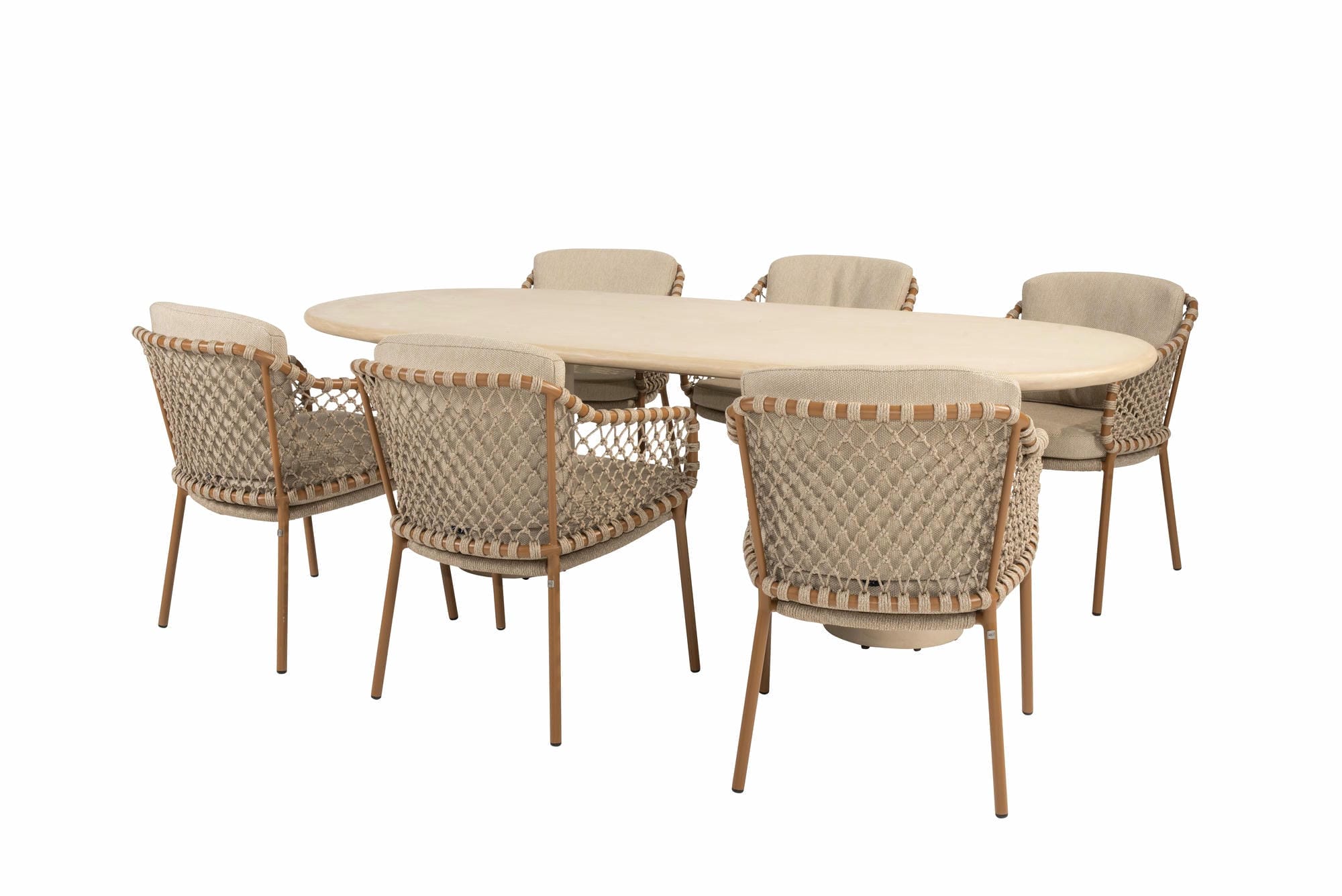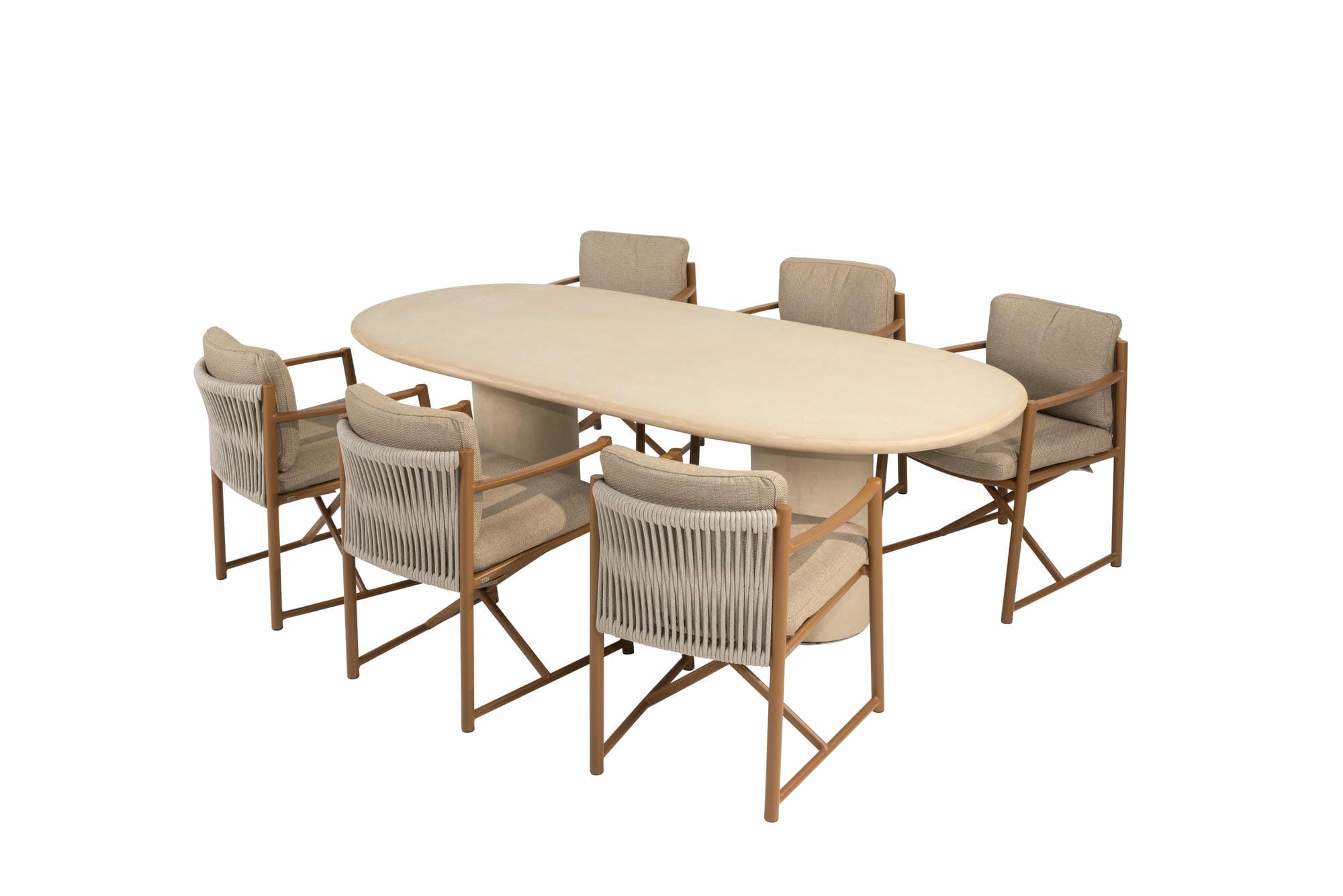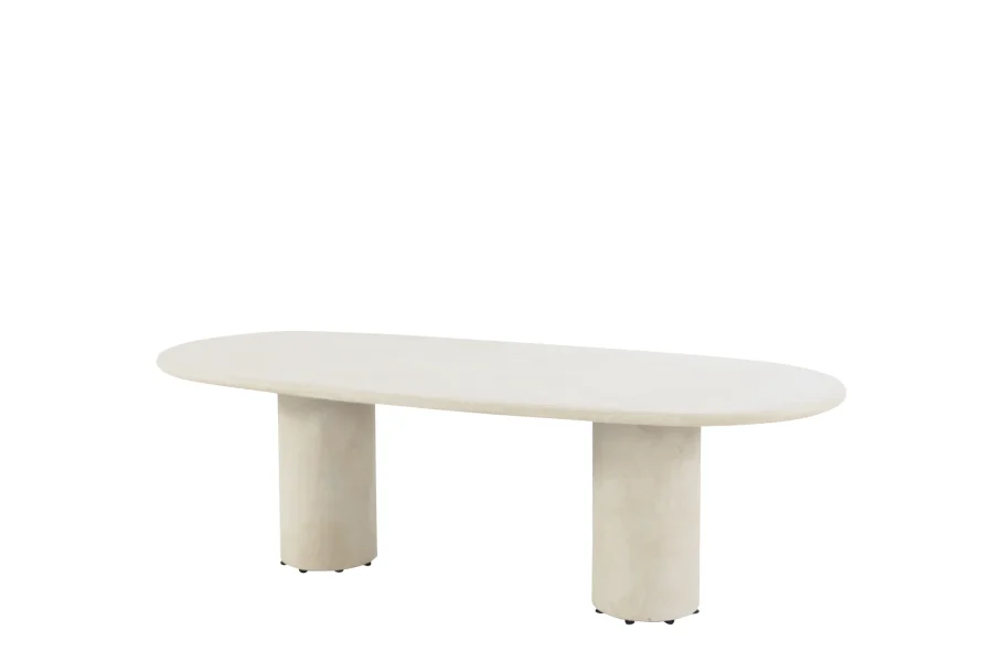 Dies ist der Hampton Mortex Gartentisch mit ovaler Platte von 4 Seasons Outdoor. Dieser auffällige und stilvolle Tisch hat zwei dicke runde Mortex-Beine und eine 240 x 105 cm große ovale Mortex-Tischplatte. Die Höhe des Tisches beträgt 75 cm.
