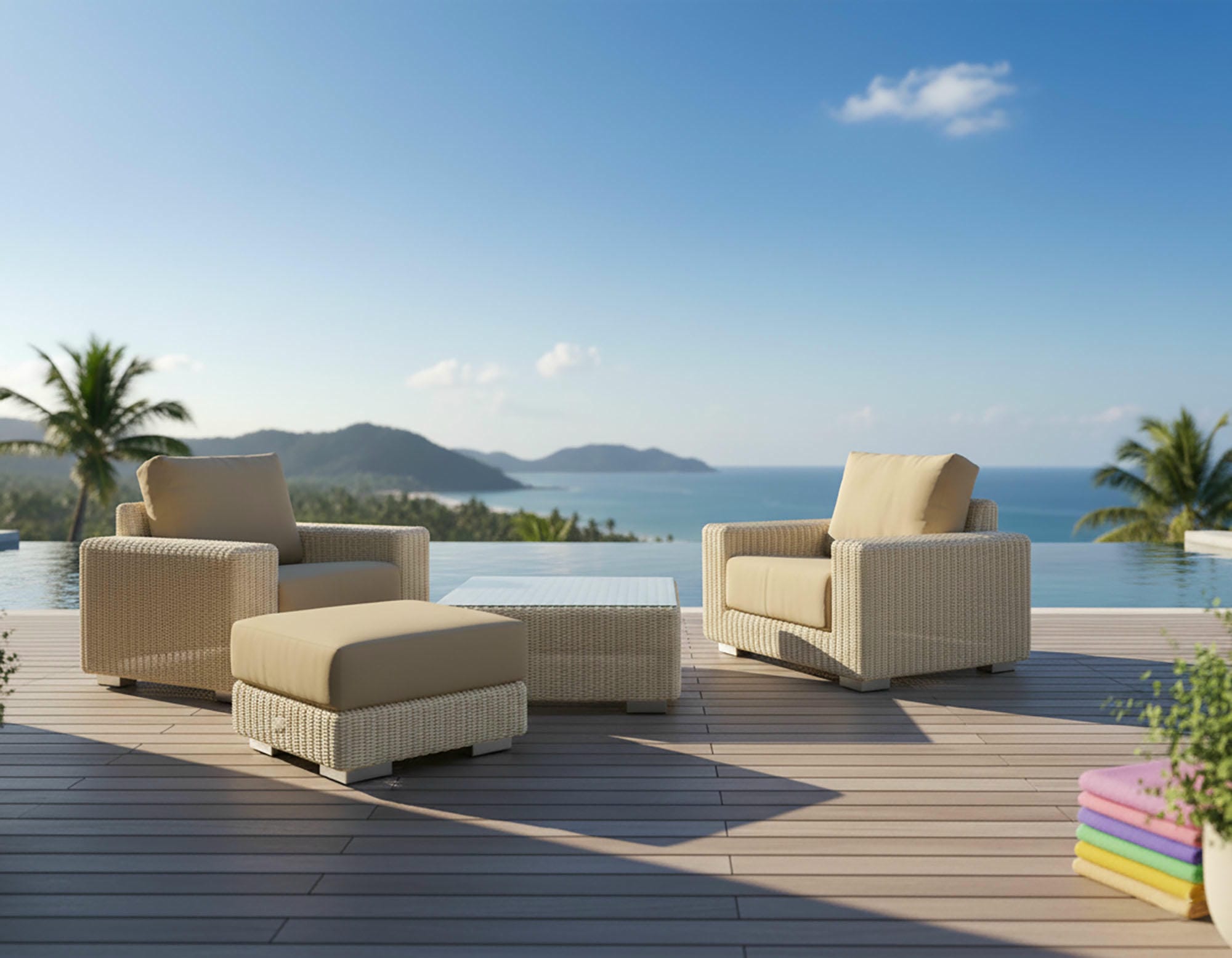 Dank der verwendeten Aluminium- und Geflechtmaterialien sind die Kingston-Möbel überraschend leicht. Und natürlich sind sie 100% wetterfest, aber auch sehr pflegeleicht. So behalten Sie wertvolle Zeit, um sich in diesem luxuriösen Lounge-Set zu vergnügen.