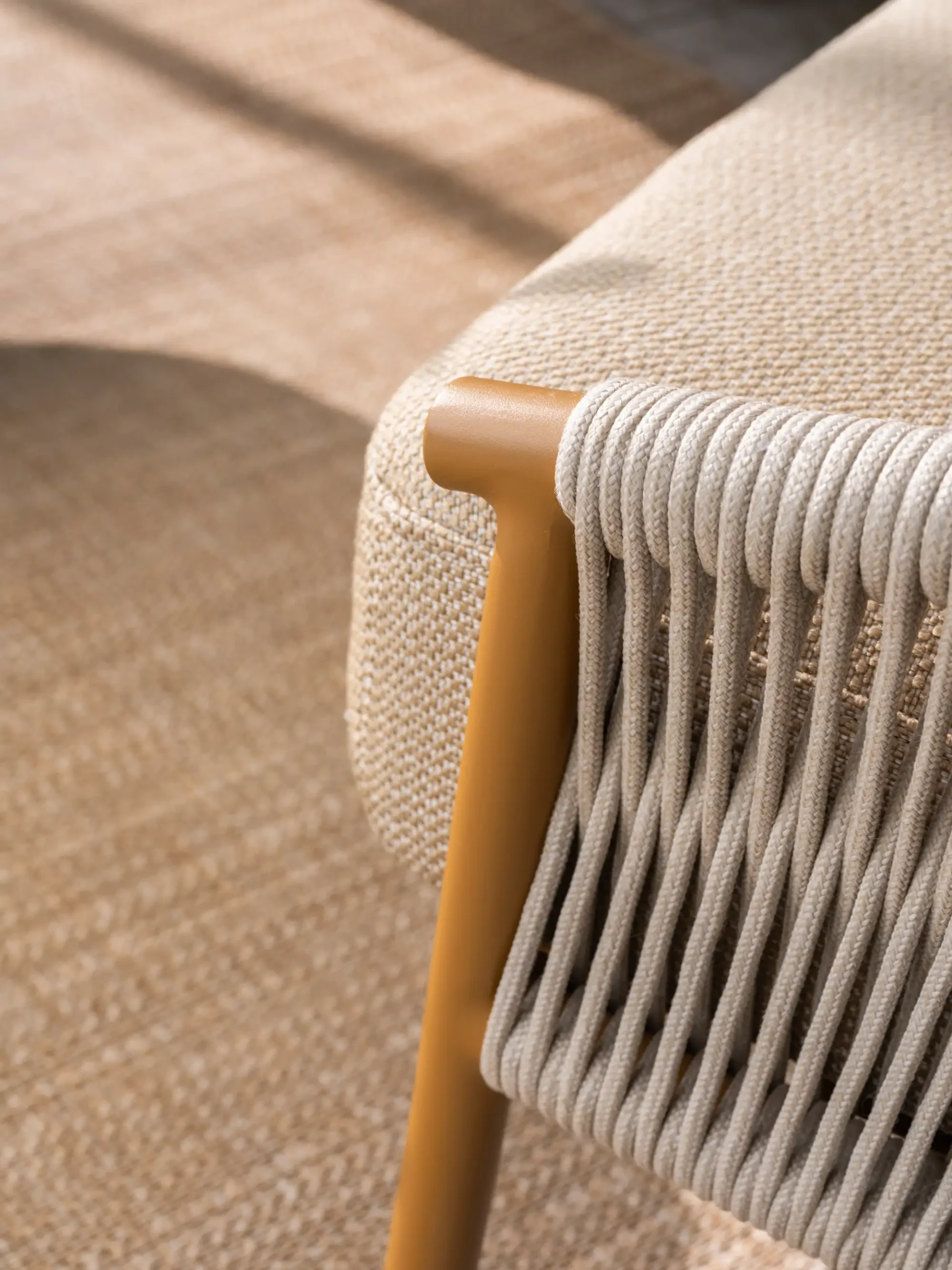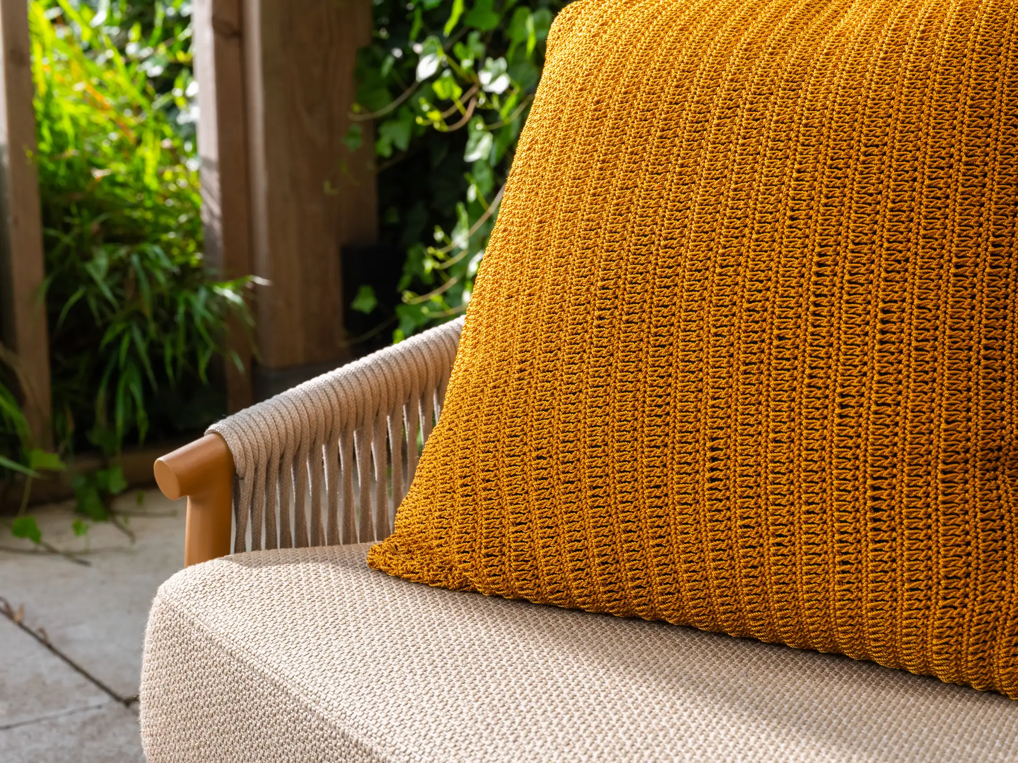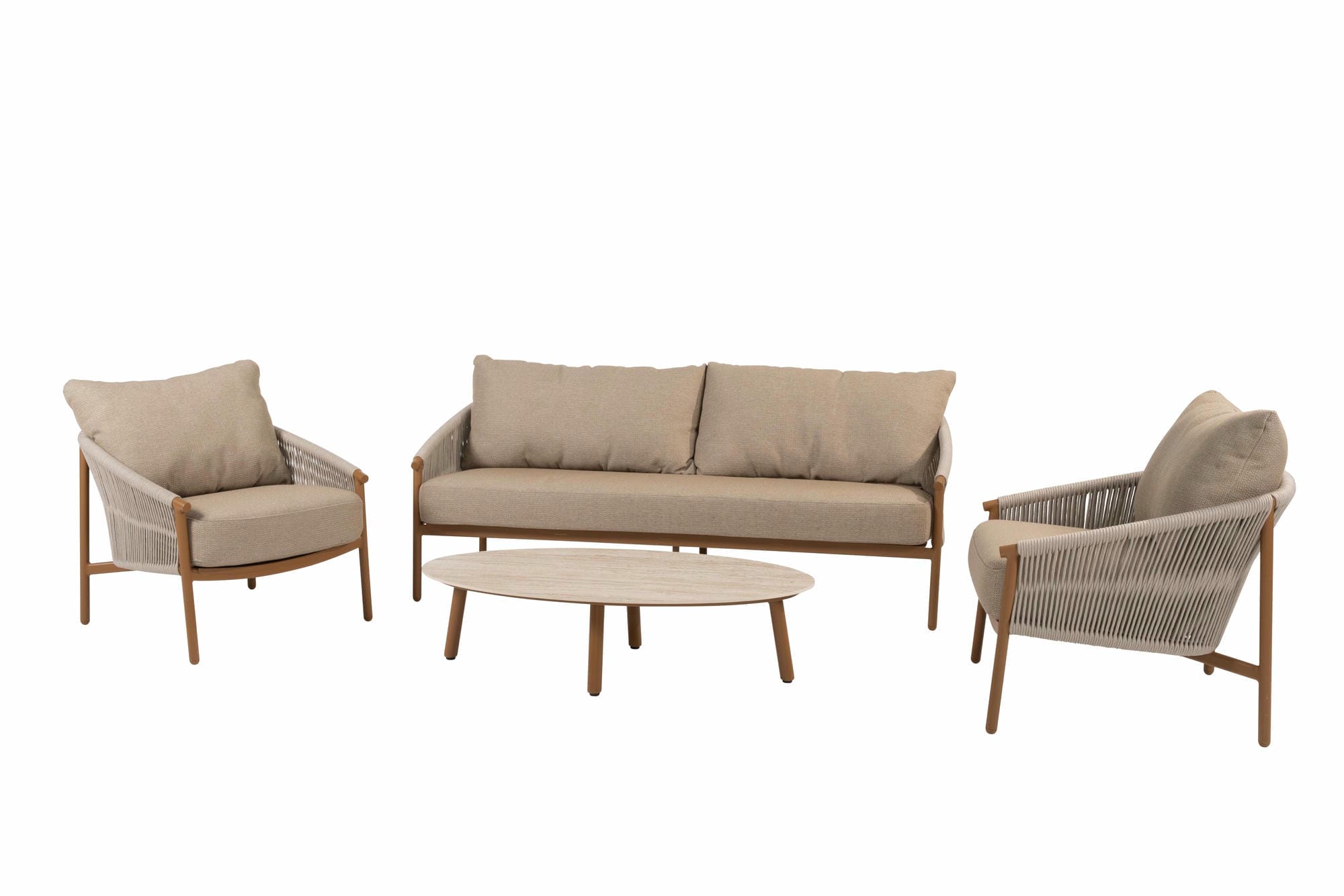 Genießen Sie ultimativen Lounge-Komfort mit dem Milos Lounge-Set von 4 Seasons Outdoor. Dieses großzügige Lounge-Set lädt mit dicken Sitzkissen und einem schönen Design zum Entspannen ein. Die Kombination aus den warmen bernsteinfarbenen Rahmen und dem raffinierten Seilgeflecht verleiht der Garnitur einen besonders attraktiven Look.