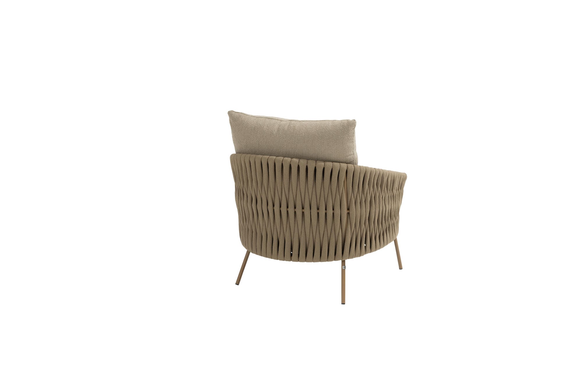 Das Molina Lounge-Set von 4 Seasons Outdoor mit Sofie-Tischen ist mehr als nur luxuriös. Das Set ist ein echter Blickfang: Das Sofa und die Stühle sind mit wunderschönem, breitem Seilgeflecht und bernsteinfarbenen Edelstahlrahmen ausgestattet. Das Set bietet herrlichen Sitzkomfort: Die wetterfesten Kissen mit weichem Bouclé-Stoff erinnern eher an Ihr Wohnzimmer als an ein Allwetter-Loungeset, das das ganze Jahr über im Freien stehen bleiben kann.