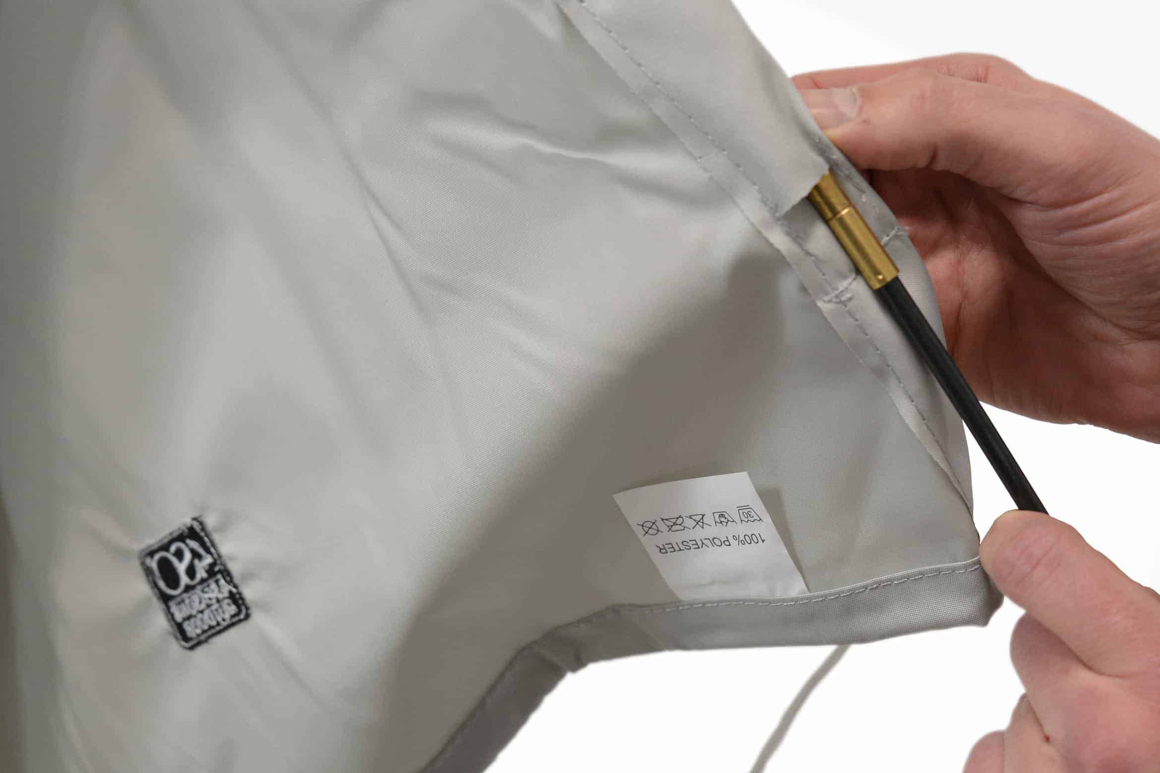 De hoes is moeiteloos aan te brengen dankzij de bijgeleverde verlengstok, die gemakkelijk in de hoes kan worden geplaatst. De opening voor de stok bevindt zich naast de rits, waardoor het aanbrengen een eenvoudige klus wordt.
