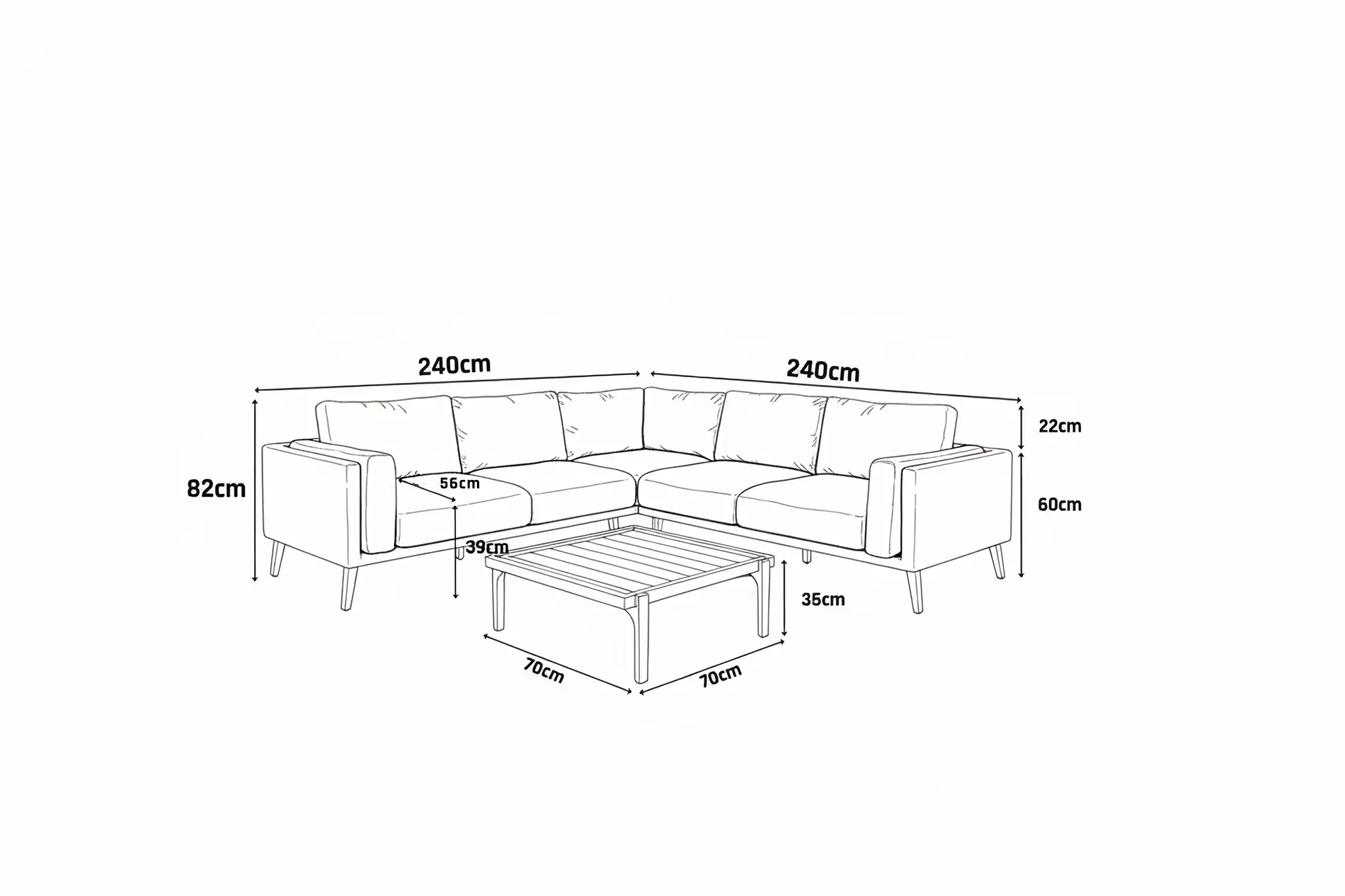 Das trendige Set ist mit dem besten derzeit erhältlichen Outdoor-Textil gepolstert: Sunbrella. Die Polsterung fühlt sich nicht nur wunderbar weich an, sondern ist auch wasser- und schmutzabweisend, farbecht und leicht zu reinigen.