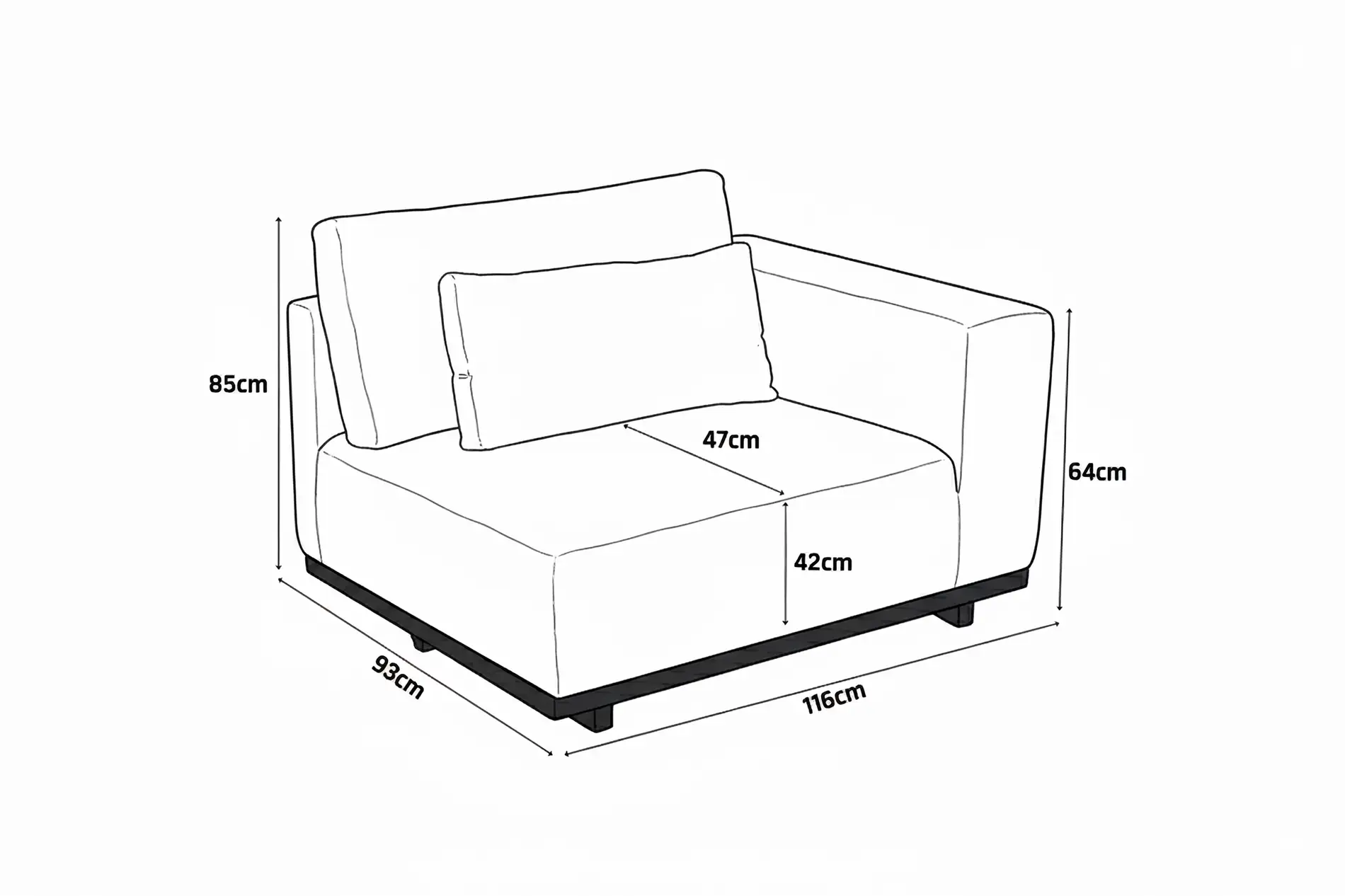 Dies ist der Flow Lux 2-Sitzer mit Armlehne links.