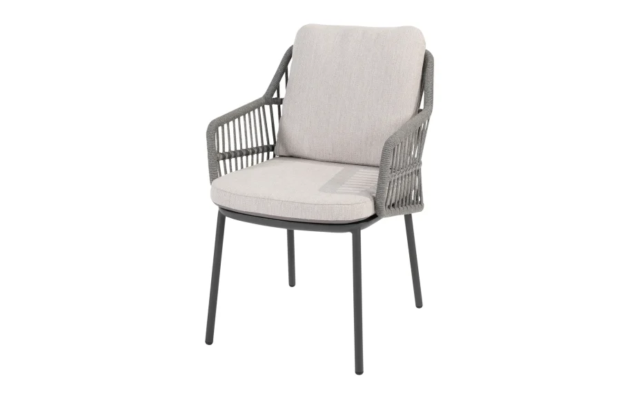 Sind Sie auf der Suche nach einem Gartenstuhl, der Eleganz und Komfort perfekt vereint? Das ist der Gartenstuhl Alicante von Taste by 4 Seasons. Der terrakottafarbene Aluminiumrahmen ist mit einem raffinierten Seilgeflecht veredelt, das dem Stuhl einen modernen und luxuriösen Look verleiht. Die extradicken Kissen mit weichem Olefin-Bezug und einer Füllung aus strapazierfähigem Dacron-Schaum bieten einen beispiellosen Sitzkomfort.