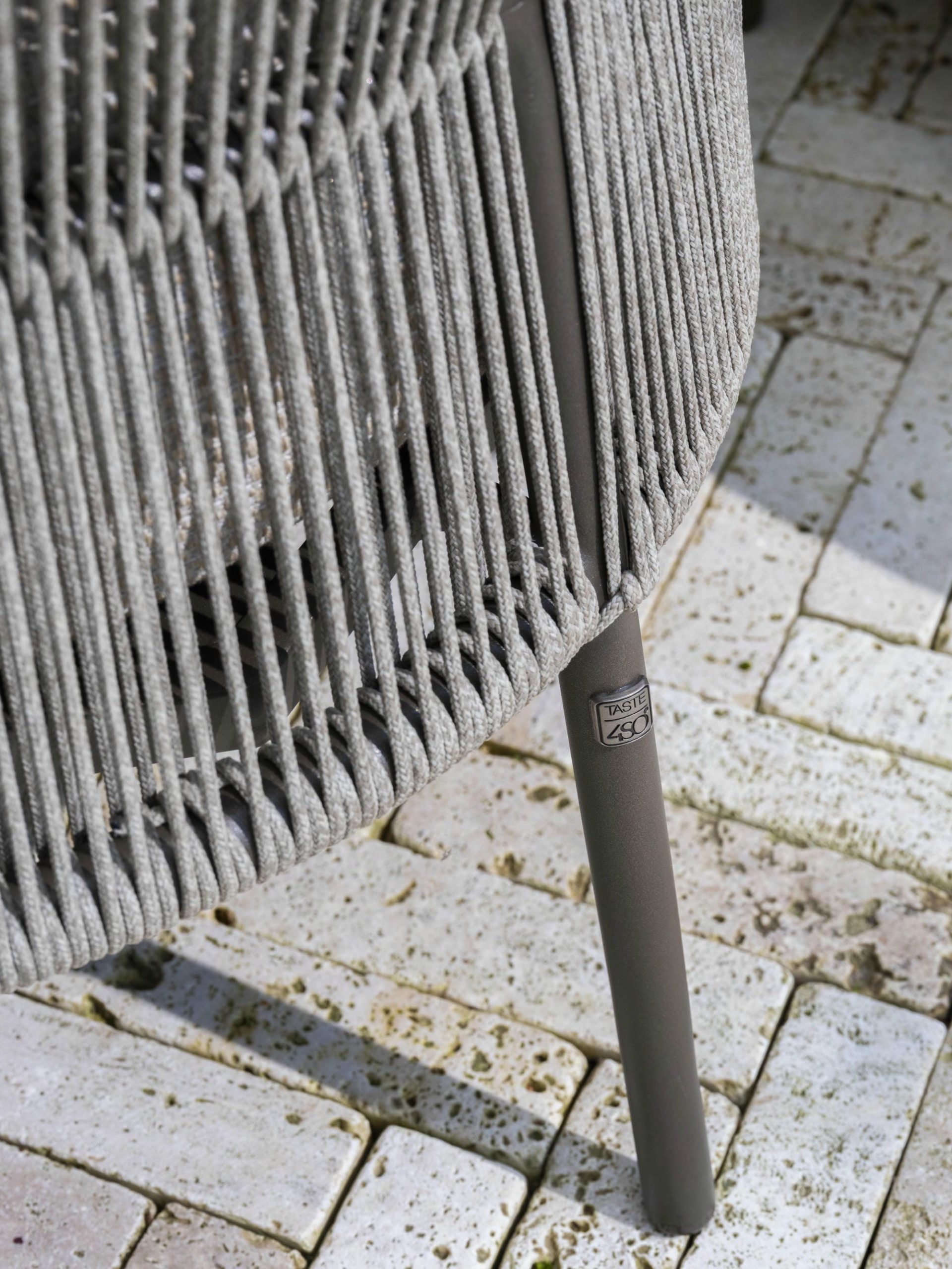 Der Florence Loungesessel Terre von Taste by 4 Seasons bietet ultimativen Sitzkomfort in einem stilvollen Design. Der Sessel hat einen leichten und stabilen Aluminiumrahmen mit Terre-Pulverbeschichtung. Für einen zeitgemäßen Look ist der Sessel mit einem schönen Seilgeflecht ausgestattet. Zwei dicke Kissen mit luxuriöser Olefin-Polsterung garantieren einen wunderbaren Lounge-Komfort.