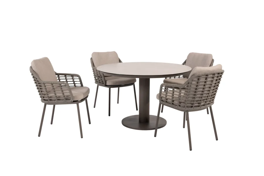 Entdecken Sie das Gartenmöbelset Taste by 4 Seasons Puglia mit Sarah-Tisch – die ideale Kombination aus Stil, Komfort und Langlebigkeit. Dieses hochwertige Gartenmöbelset wurde aus sorgfältig ausgewählten Outdoor-Materialien gefertigt, damit Sie viele Jahre Freude daran haben.
