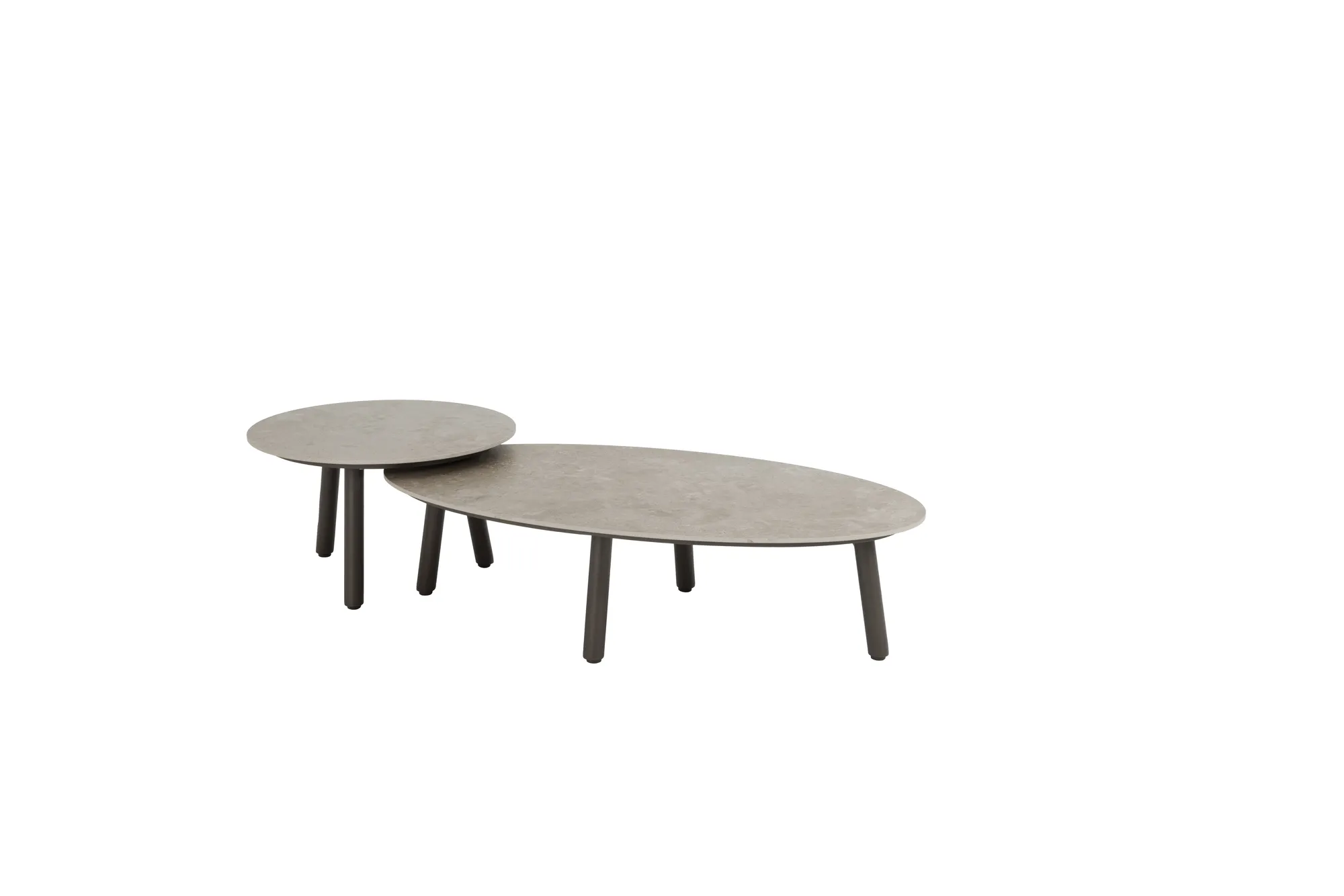 Lernen Sie den Taste by 4 Seasons Salute Lounge-Tisch Terre mit grauer Keramikplatte kennen. Der Lounge-Tisch hat ein Aluminiumgestell mit einer Terre-Pulverbeschichtung und eine graue Keramikplatte mit einem Durchmesser von Ø 60 cm. Der Tisch ist 35 cm hoch