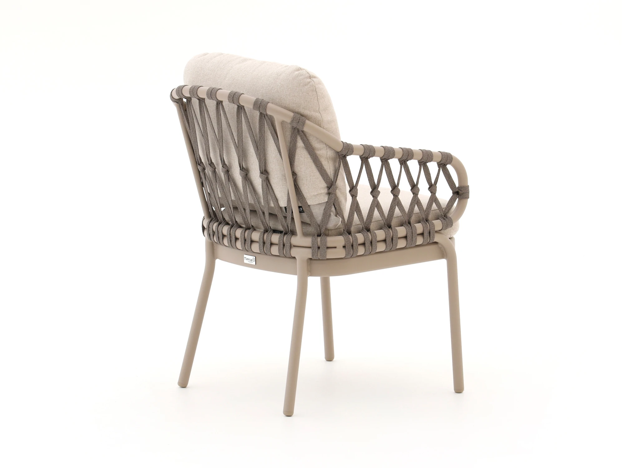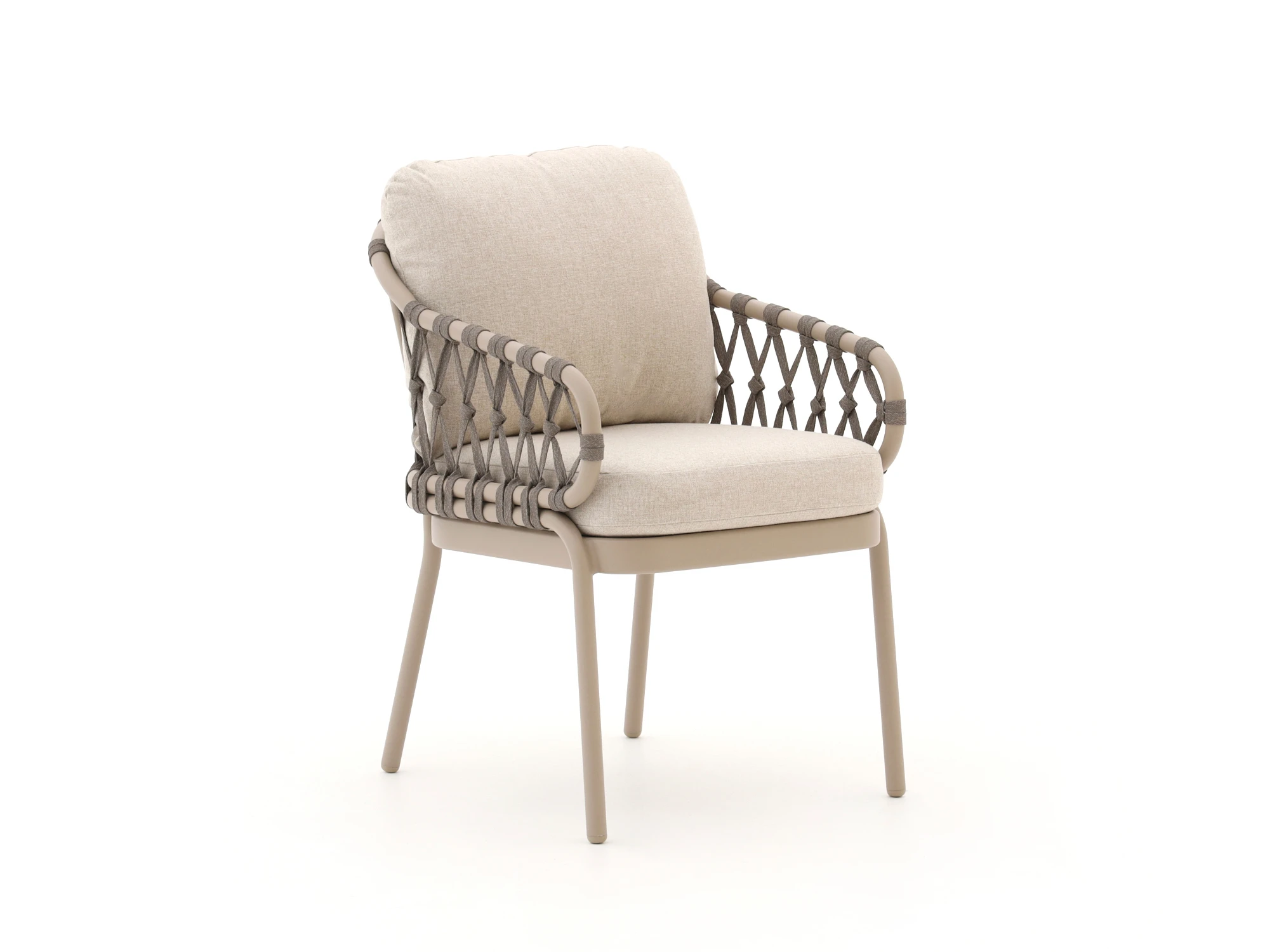 Lernen Sie den Tierra Outdoor Natal Gartenstuhl in Champagnerfarbe kennen. Der Natal Stuhl hat einen Aluminiumrahmen mit hochwertiger Seilgeflecht, was dem Stuhl nicht nur ein luxuriöses Aussehen verleiht, sondern auch für angenehmen Sitzkomfort sorgt. Dank des ergonomischen Designs können Sie auch an langen Abenden entspannt im Natal Gartenstuhl sitzen.