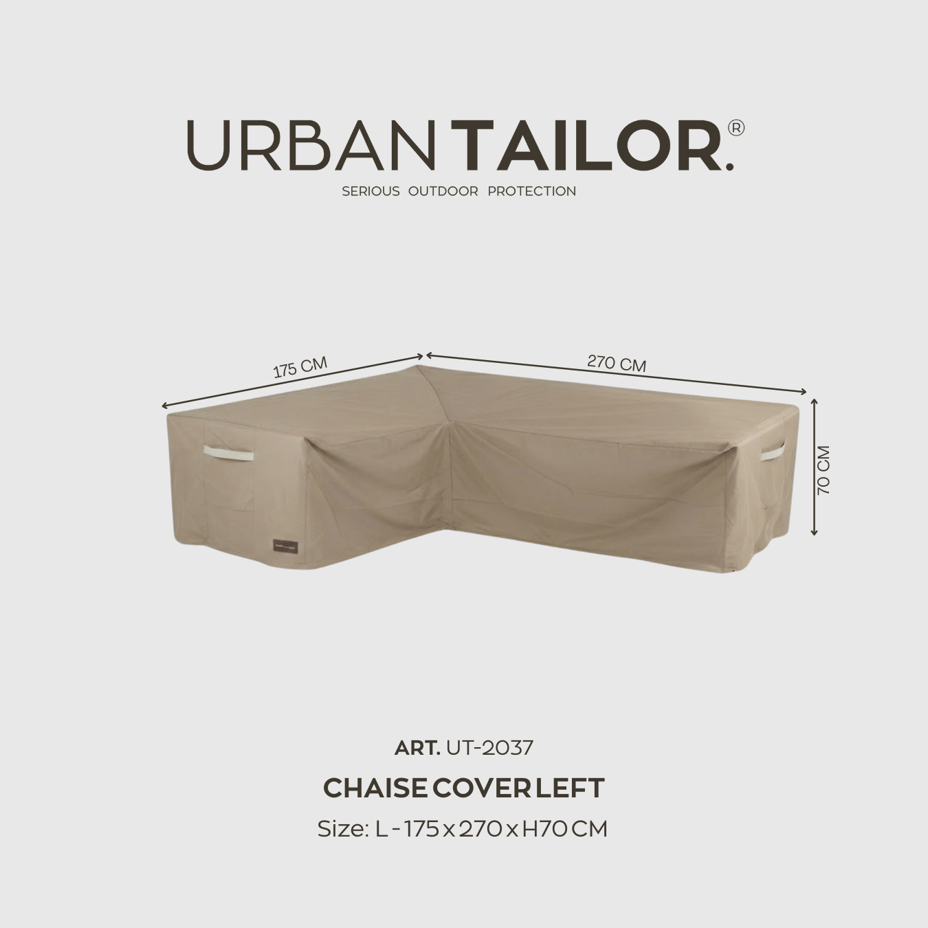 Dies ist der URBAN TAILOR. Gartenmöbelschutz 2037 für Chaiselongue-Sofas mit der Chaiselongue auf der linken Seite (wenn Sie vor dem Möbelstück stehen).