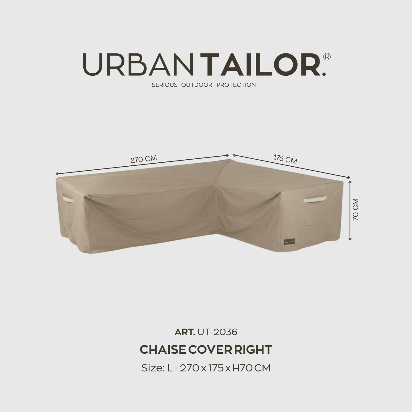Dies ist der URBAN TAILOR. Gartenmöbelschutz 2036 für Chaiselongue-Sofas mit der Chaiselongue auf der rechten Seite (wenn Sie vor dem Möbelstück stehen).